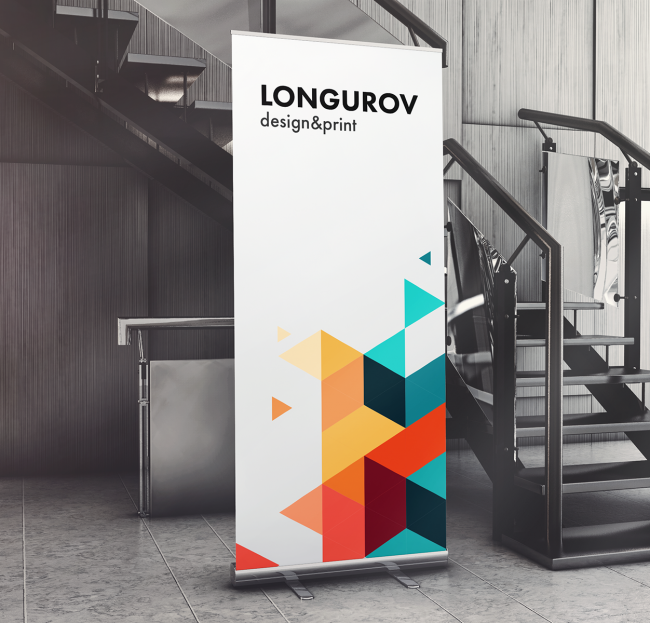 Compact roller banner supported by a bar that folds up into the base. Ideal for display stands and for making the best use of space.